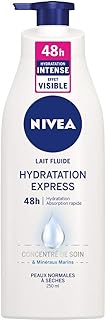 NIVEA Lait Fluide Hydratation Express 48h, Soin corporel pour peaux normales à sèches, Lait corporel enrichi en concentré de soin NIVEA & en Minéraux Marins, 250 ml