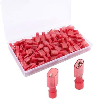 Heschen Lot de 100 bornes de câble femelles à déconnexion rapide en vinyle entièrement isolées 6,3 x 0,8 mm pour 0,5–1,5 mm² (22–16 AWG) Rouge