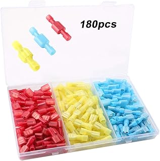 Aiqeer 200 Pièces Set de Connecteurs de Câble Électrique T-Tap, Terminal de Fil Isolé Rapide T-Tap, Connecteur de Borne Entièrement Isolé, Connecteur Rapide T-Tap (Rouge, Bleu, Jaune)