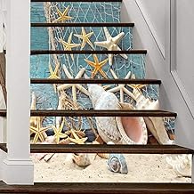A.Monamour Autocollants d'escalier Auto-adhésifs 3D Coquilles D'Étoiles Mer Planches Vinyle Imperméable Sticker Contremarche d'escalier Sticker Carrelage Sticker Mural Autocollant Mural Art Décor DIY