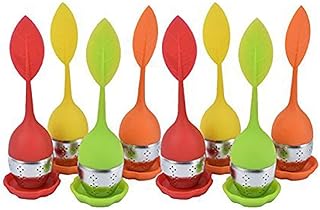 CRIVERS Infuseur de thé de Feuille en Vrac, passoire de thé d'acier Inoxydable avec la Longue poignée de Forme de Feuille de Silicone (8pc, Couleurs Assorties, Forme de Feuille Verte en)