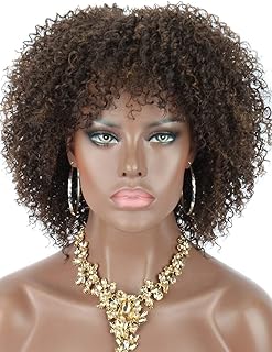 Kalyss 8' Synthétique Court Afro Kinky Curly Perruques pour les Femmes Noires Perruques Réalistes Marron Bouclés avec Frange de Cheveux Léger Doux Bouclés Bouclés Perruques Cheveux (Brown Highlights)
