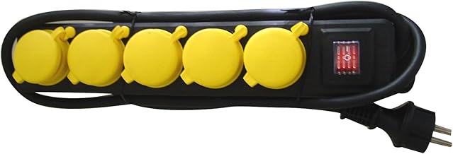 uniTEC 47555 Barre multiprise 5 prises Norme IP 44 / H07RN-F3G1 Coupe 5 mm² Noir/jaune 1,4 m (Import Allemagne)