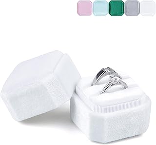 DesignSter Octagon Square Ring Bearer Box avec Couvercle Amovible, Velours Double Ring Box for Engagement, Ring Display, Ring Case Holder for Good Gift for Bridal Or Lovers