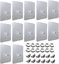 12 Set Crochets Adhésifs Auto Adhésifs, Crochets Transparents, 60x60 mm Sans Trace Sans Perçage Clous Collants de Montage Mural Pour Salle de Bain, Cuisine, Salle de Douche